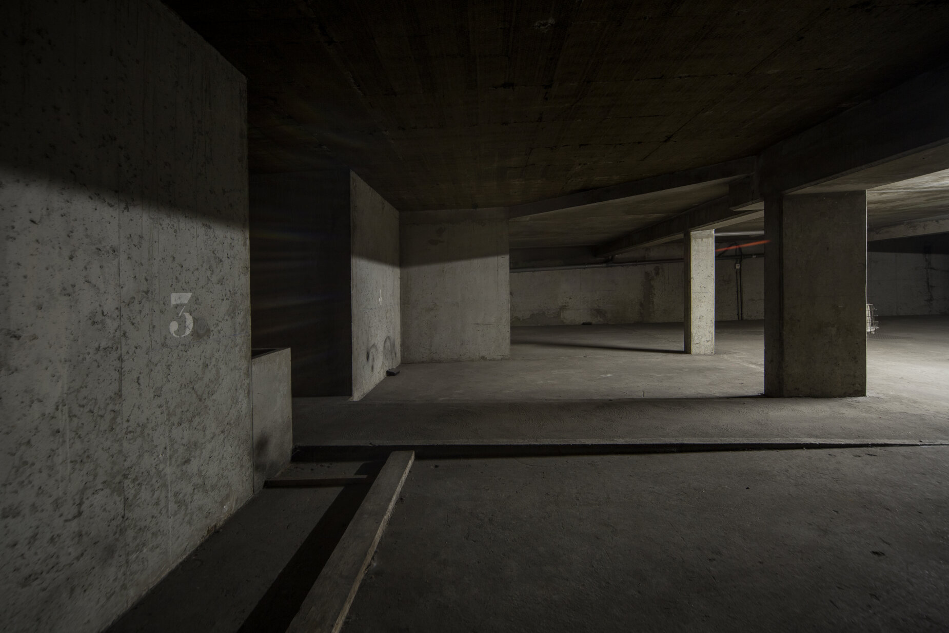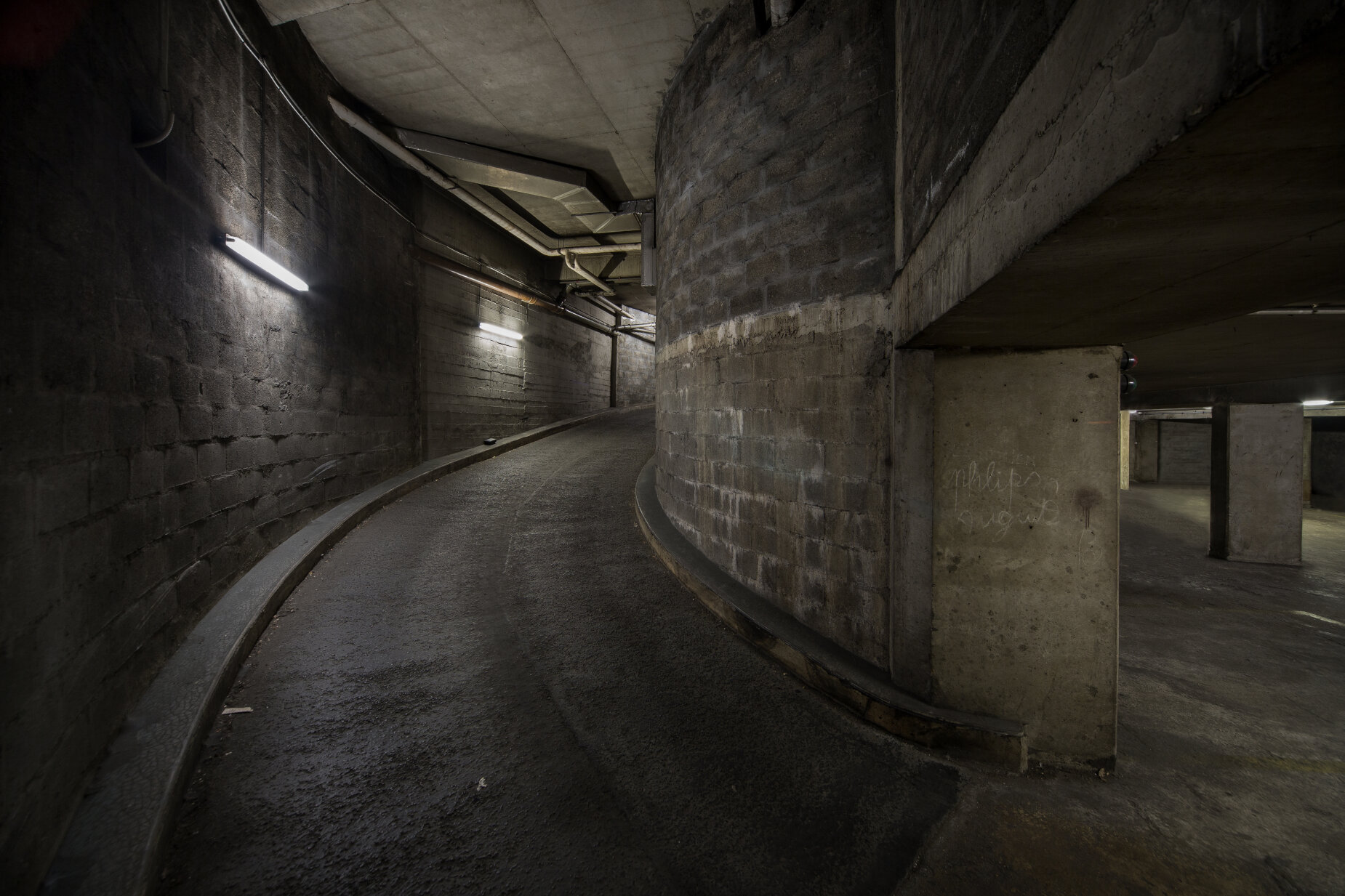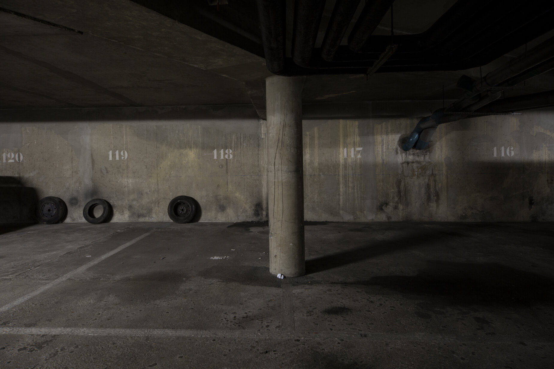 Les bruits du bâtiment, comme les canalisations et les ventilateurs d'aération, se mélangent au silence de la solitude totale. Silence seulement interrompu en de très rares occasion par des pas rapides qui passent sans s’arrêter ou par le bruit d'un moteur qui gronde dehors. La vie est là haut, et les parkings en sont la face cachée et souterraine.