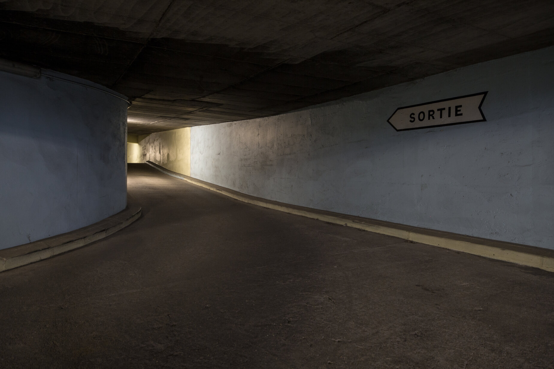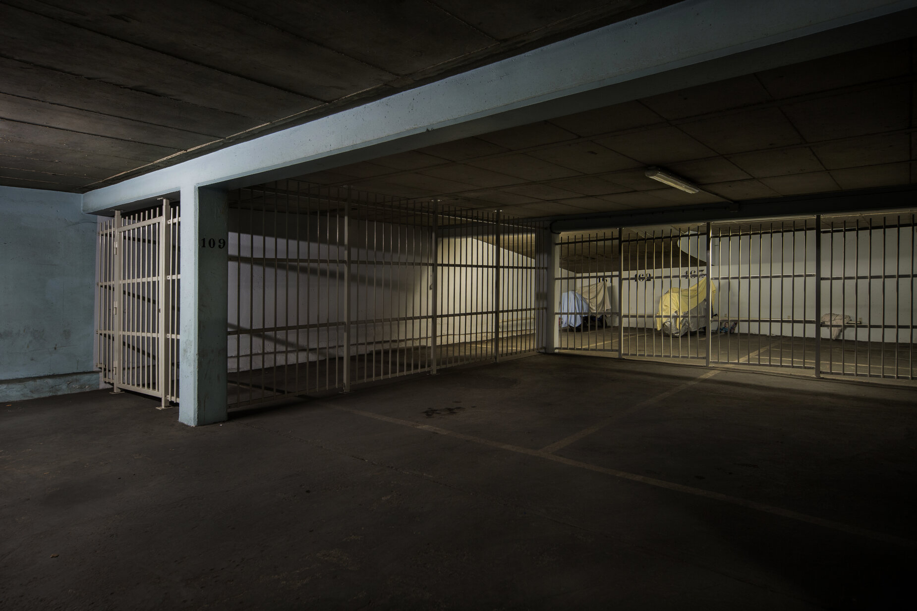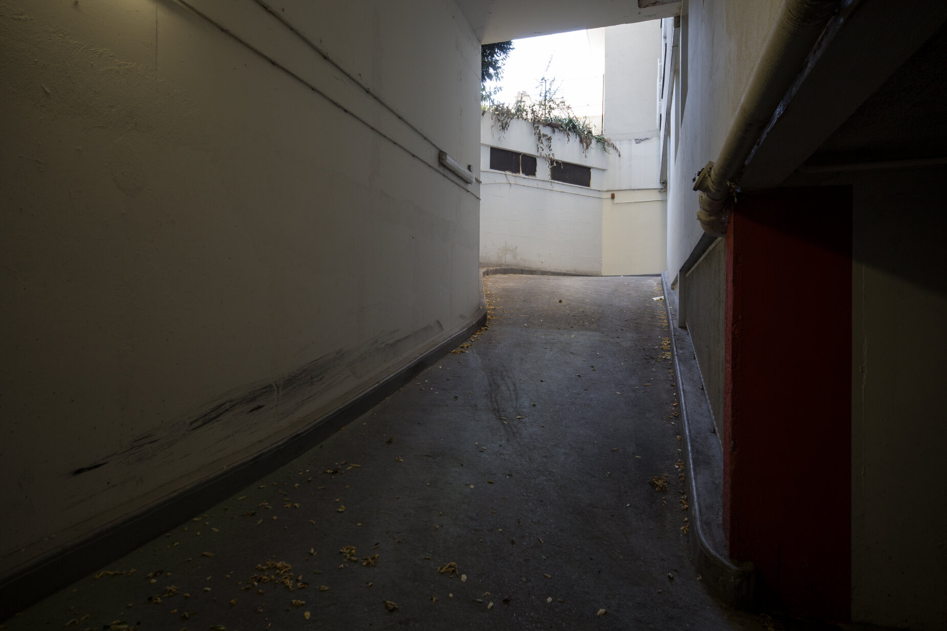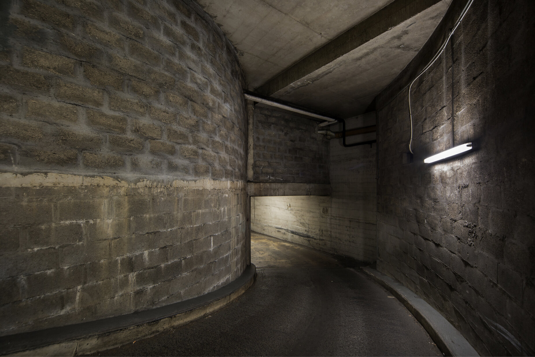 Cette série de photographie se focalise sur des lignes architecturales, pures et nues où tout a une fonctionnalité . De froides lumières, dont l'unique finalité est d'allumer les ténèbres, dessinent des formes sur les murs. Le vide noir des endroits sombres où la lumière n'est pas fondamentale crée dans certains cas des paysages troublants. L'architecture ici est remarquable de par sa praticité sans chair et dépourvue de parures ou d'éléments superflus. Tous dessins et symboles y ont une signification concrète et utile; la sortie, le numéro de place, l’étage. Les ornementations sont hors de propos dans ces non-lieux. Les ressources sont économisées jusqu'à l'expression minimale, tout est simplifié; les matériaux, les espaces, les interstices, les couloirs, les escaliers. Même les artistes du graffiti n'osent pas décorer les garages pour leur donner une touche humaine.