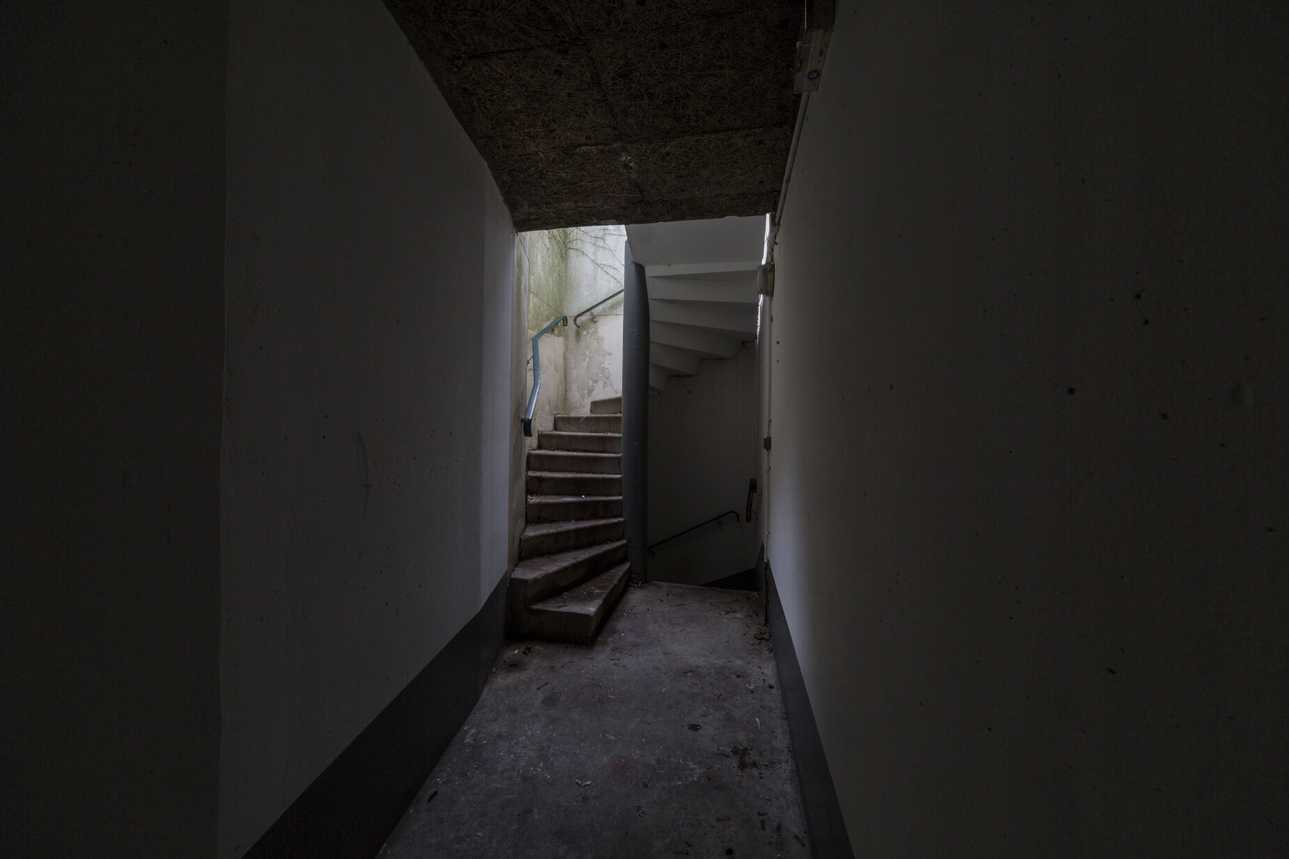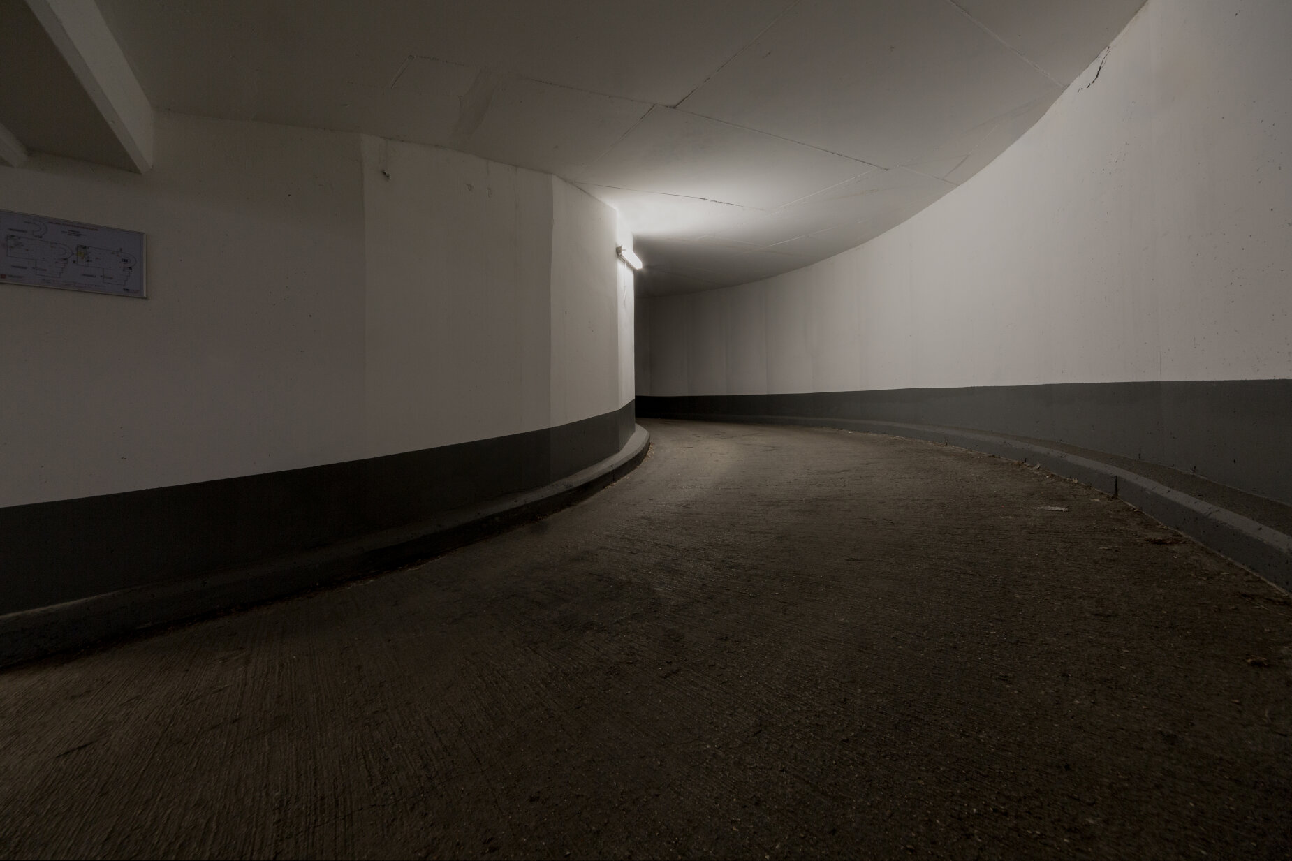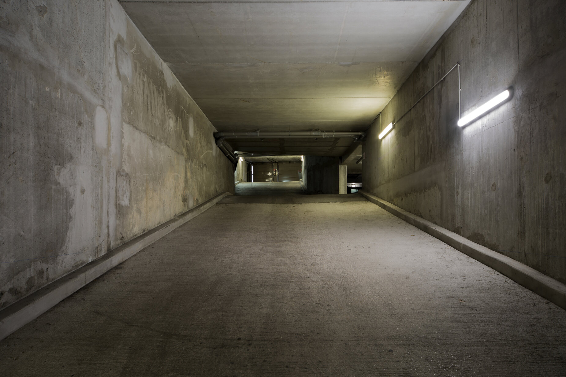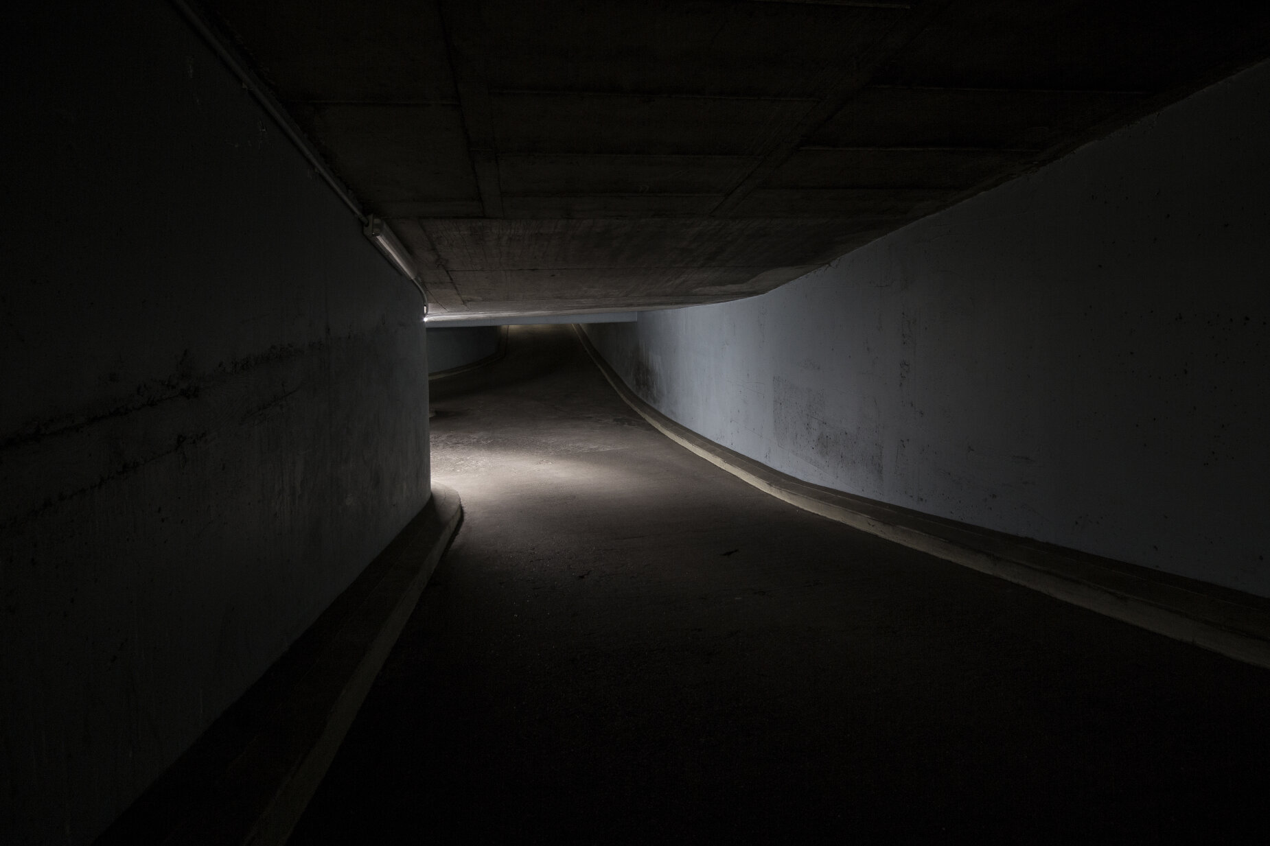 Cette série de photographie se focalise sur des lignes architecturales, pures et nues où tout a une fonctionnalité . De froides lumières, dont l'unique finalité est d'allumer les ténèbres, dessinent des formes sur les murs. Le vide noir des endroits sombres où la lumière n'est pas fondamentale crée dans certains cas des paysages troublants. L'architecture ici est remarquable de par sa praticité sans chair et dépourvue de parures ou d'éléments superflus. Tous dessins et symboles y ont une signification concrète et utile; la sortie, le numéro de place, l’étage. Les ornementations sont hors de propos dans ces non-lieux. Les ressources sont économisées jusqu'à l'expression minimale, tout est simplifié; les matériaux, les espaces, les interstices, les couloirs, les escaliers. Même les artistes du graffiti n'osent pas décorer les garages pour leur donner une touche humaine.